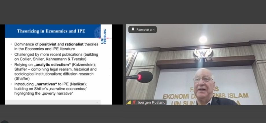Kuliah umum yang dilaksanakan secara hybrid yakni tatap muka di UIN Sunan Kalijaga Yogyakarta dan secara virtual melalui platform Zoom ini menghadirkan narasumber utama, Prof. Dr. Clemens Jürgen Rüland yang merupakan International Relations and Southeast Asian Studies dari University of Freiburg, Jerman.