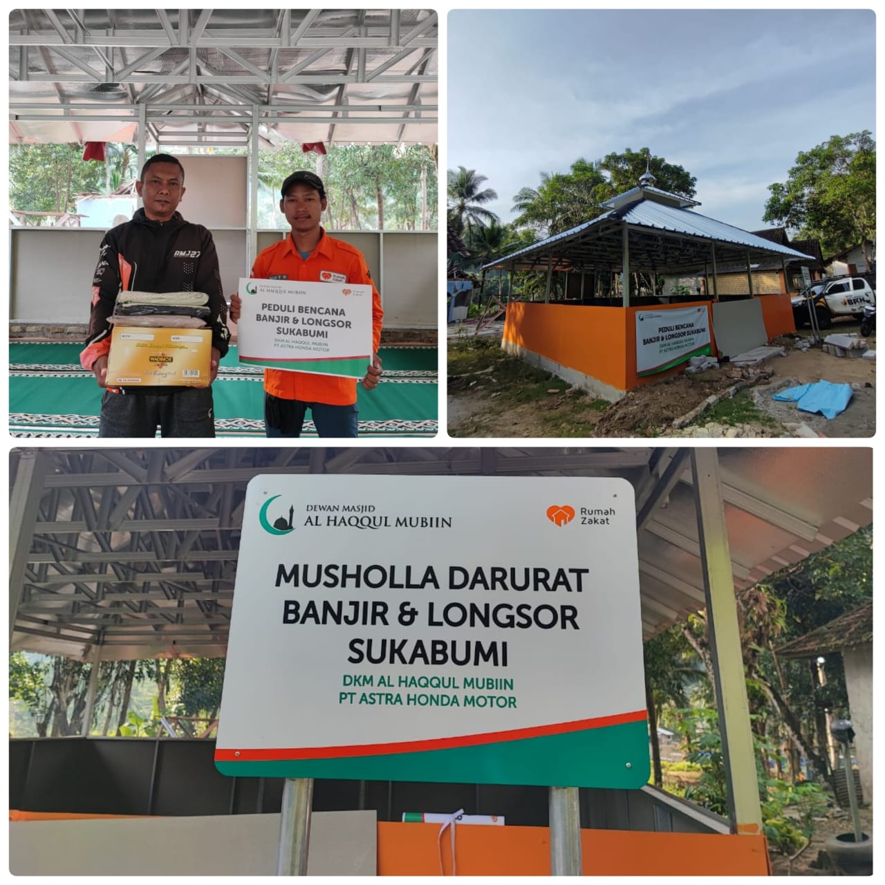 Sebagai respons cepat, donasi dari jamaah DKM Al Haqqul Mubiin disalurkan melalui Rumah Zakat guna mendirikan musholla darurat yang dapat digunakan oleh masyarakat setempat. Mengingat juga bulan suci Ramadhan yang sudah dekat, jadi warga setempat sangat membutuhkan tempat ibadah yang layak.