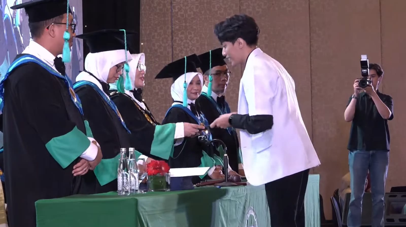 Hadir pula Wakil Rektor Bidang Pembelajaran dan Kemahasiswaan Dr. Asnita Frida B.R. Sebayang, S.E., M.Si., Wakil Rektor Bidang Perencanaan, Sumber Daya Umum dan Keuangan Dr. Helmi Aziz, S.Pd.I., M.Pd.I., pimpinan FK Unisba, perwakilan rumah sakit jejaring, serta para tamu undangan dan keluarga dokter baru.