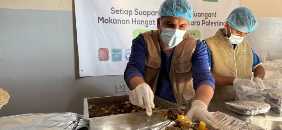 Makanan hangat disalurkan ke area Gaza Utara yang padat pengungsi pada Rabu (12/11) waktu setempat. Gaza Utara dipilih sebagai wilayah penyaluran karena kondisinya yang sangat darurat, di mana pasar sudah tidak lagi berfungsi dan kerumunan pengungsi dengan tenda seadanya terlihat begitu padat.