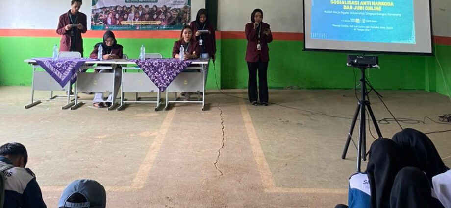 BERITAUNGGULAN.COM, DESA CIJATI — Mahasiswa Kuliah Kerja Nyata (KKN) Universitas Singaperbangsa Karawang (Unsika) Desa Cijati menggelar kegiatan Sosialisasi Anti Narkoba dan Judi Online di SMKN Maniis pada Selasa, 13 Januari 2026. Kegiatan ini menghadirkan pemateri dari unsur TNI dan POLRI sebagai bentuk sinergi dalam upaya pencegahan perilaku menyimpang di kalangan remaja.