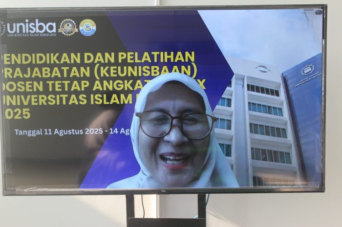 BERITAUNGGULAN.COM, BANDUNG — Universitas Islam Bandung (Unisba) menyelenggarakan Pelatihan Prajabatan (Keunisbaan) bagi Dosen Tetap Angkatan XXX pada 11–14 Agustus 2025. Kegiatan ini dilaksanakan secara hybrid, yakni luring di Gedung LPPM Unisba dan daring melalui Zoom Meeting.
